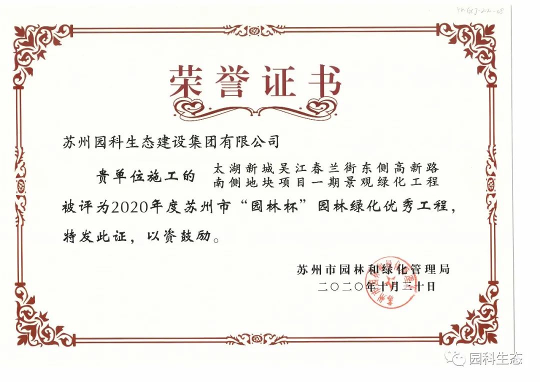 近日,园科集团负责施工建设的“阳澄湖半岛绿化提升一标段”、“太湖大道(锦峰路西—建林路)沿线景观绿化提升工程二标段”和“太湖新城吴江春兰街东侧高新路南侧地块项目一期景观绿化工程”三项工程获得苏州市优奖,为园科集团工程荣誉奖锦上添花!